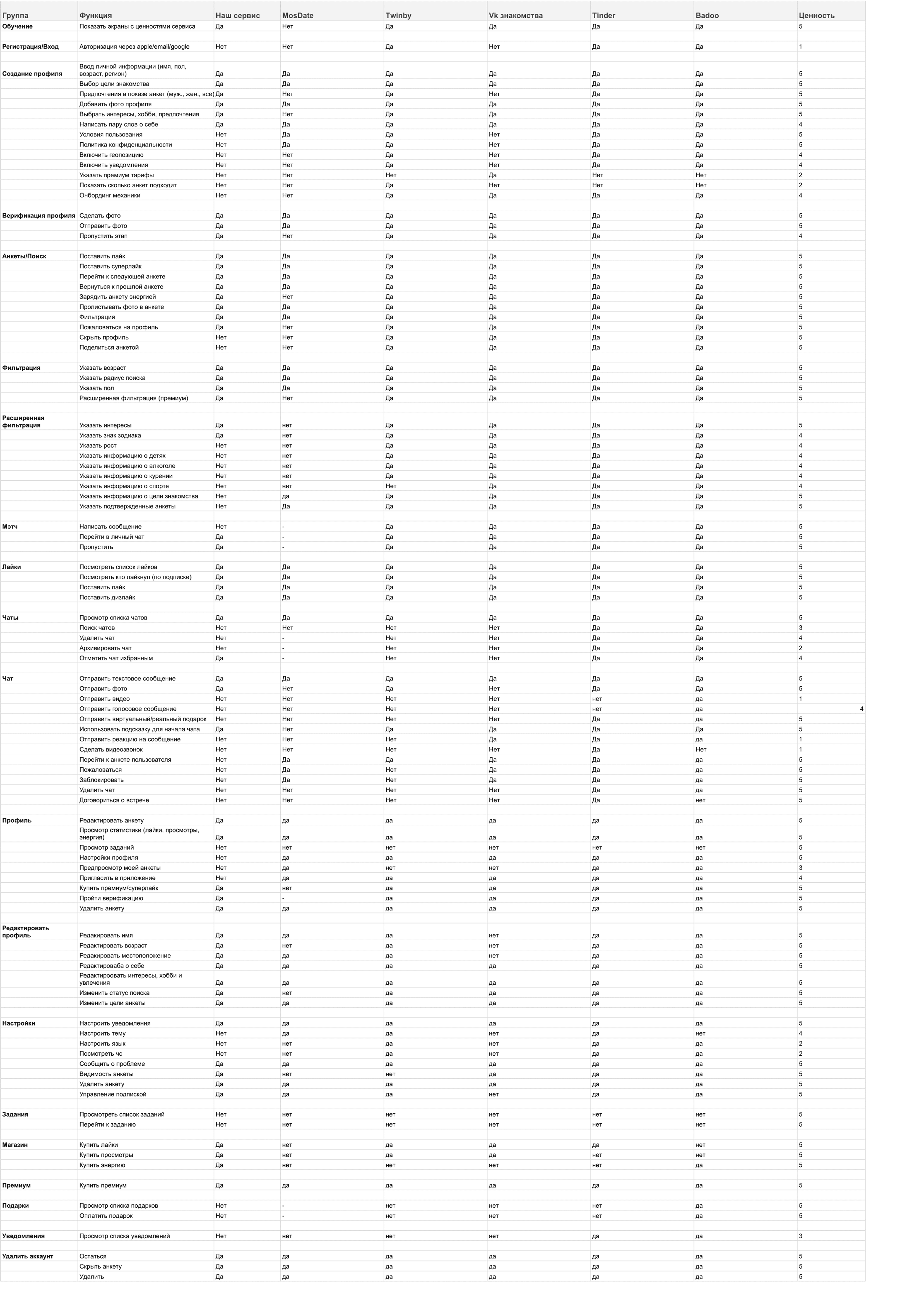 — Соответствие общей индустрии для конкуренции с главными игроками дейтинга в СНГ
