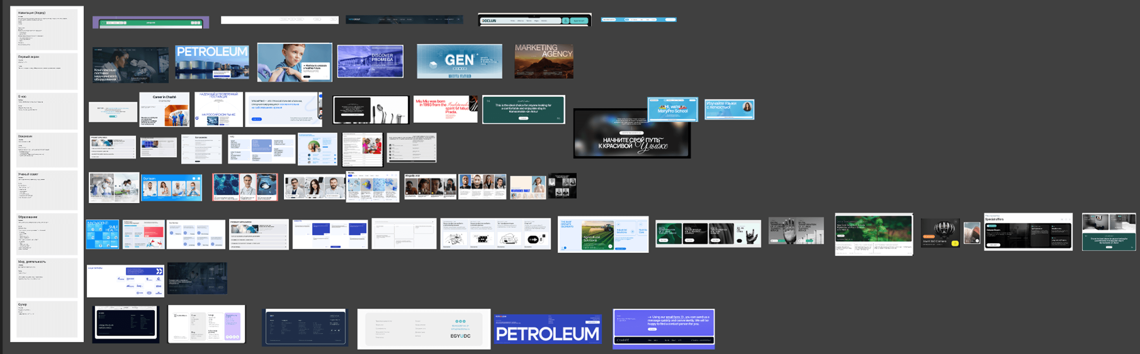 Сначала я собираю страницы сайтов подходящей по стилистике тематики, а далее разбиваю на френки, то есть вытаскиваю из каждого сайта нужные блоки, собирая десятки вариантов:
